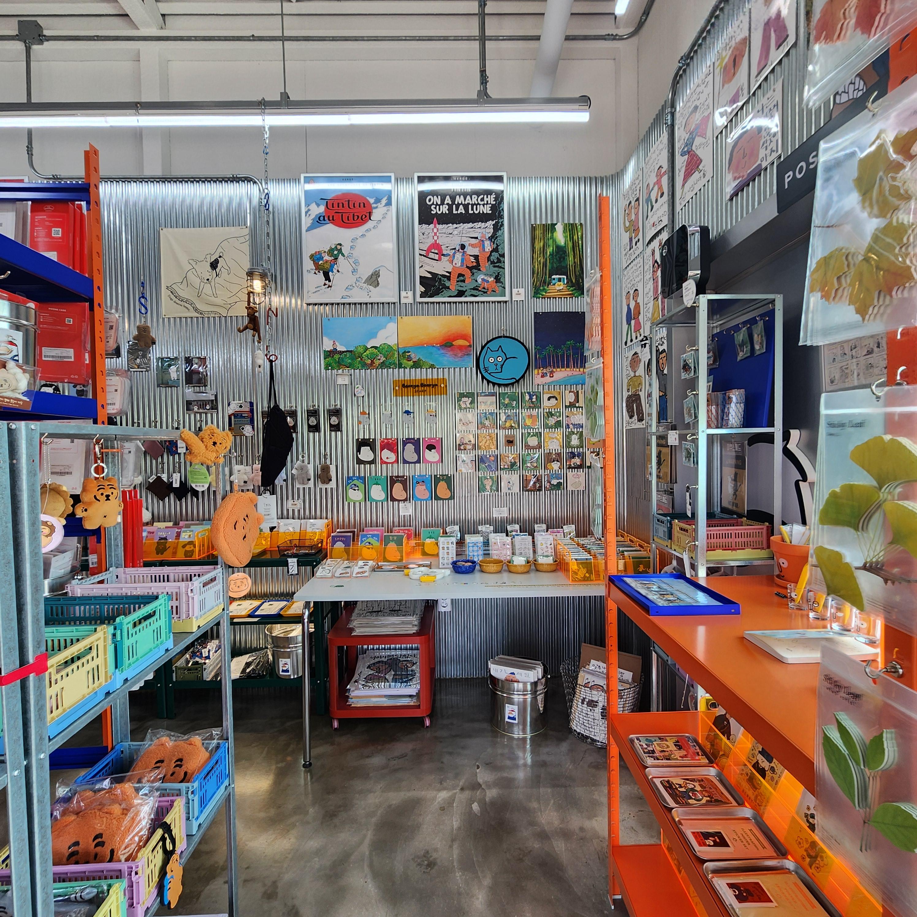 컨테이너형 구조, 작가 굿즈 중심으로 분위기가 굉장히 힙해요.